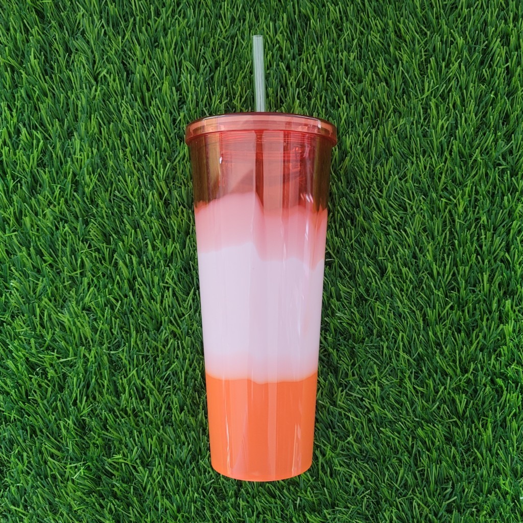 Orange Double Wall Tumbler with Straw
